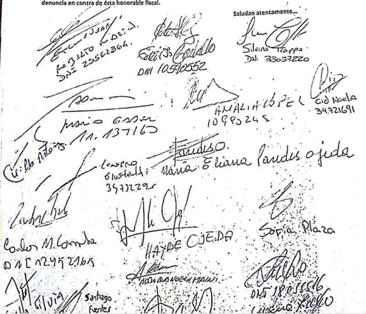 El petitorio concluye manifestando: "Por todo lo detallado y por el bien de nuestra comunidad, solicitamos dejar sin efecto la denuncia en contra de ésta honorable fiscal".