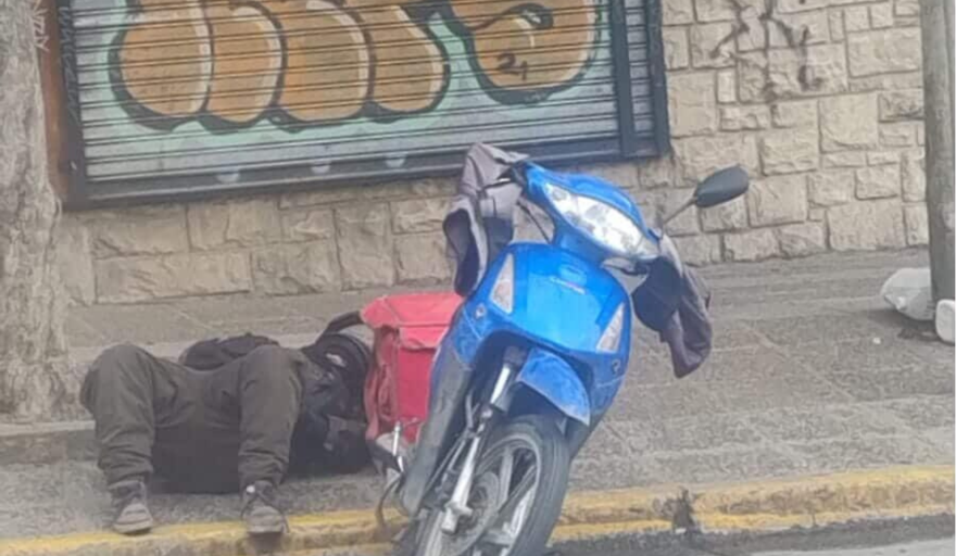 Pero, volviendo a la odisea de Maxi, el repartidor describió a Bache3000 que luego de estar algunos minutos tratando de entender qué paso, tomó la decisión de caminar con la moto al lado y buscar refugio en alguno de los estacionamientos céntricos. Cansado, con la mano lesionada, y la frustración de saber que no iba a poder trabajar por unos días, decidió terminar la caminata en Rolando y Mitre, y tirarse a descansar un rato. Cerró los ojos y se durmió.
