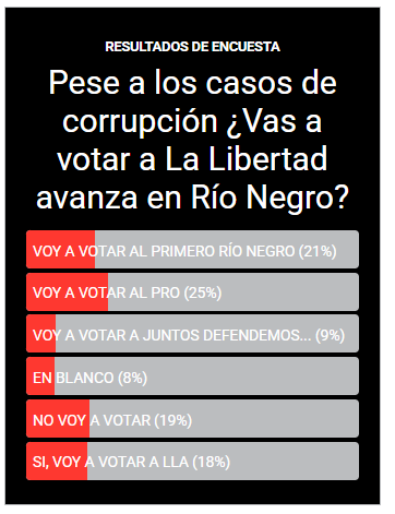 Este panorama representa un desafío mayúsculo para La Libertad Avanza de cara a las próximas elecciones nacionales. La fuga de votos hacia el PRO de Juan Martín, Primero Río Negro de Ariel Rivero, Juntos Defendemos Río Negro de Alberto Weretilneck, o directamente hacia la abstención, compromete seriamente sus aspiraciones de consolidarse como fuerza competitiva en Río Negro. El impacto del escándalo de corrupción parece haber erosionado la confianza de más del 80% de su base electoral, que ahora busca alternativas o directamente se retrae de la participación política.