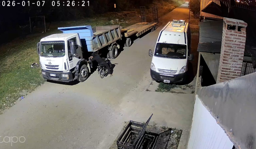 Un camión municipal amaneció el martes 7 de enero sin batería en la puerta de un domicilio particular. El vehículo había quedado estacionado durante toda la noche en la casa de un trabajador con contrato de locación de servicios vinculado a la gestión municipal. Las imágenes de las cámaras de seguridad muestran el momento exacto del robo, cerca de las 5:25 de la madrugada, cuando un delincuente aprovecha la oscuridad para llevarse el componente.
