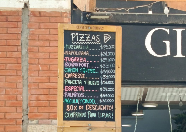 La oferta de pizzas muestran en general una variedad de precios que va desde los 20 mil pesos de una muzzarella básica hasta los 36 mil de las opciones premium con rúcula y crudo o palmitos. Alejándose unos metros de la peatonal, sobre la calle El Bolsón, las milanesas con guarnición se ubican alrededor de los 22 mil pesos en la mayoría de los locales.
