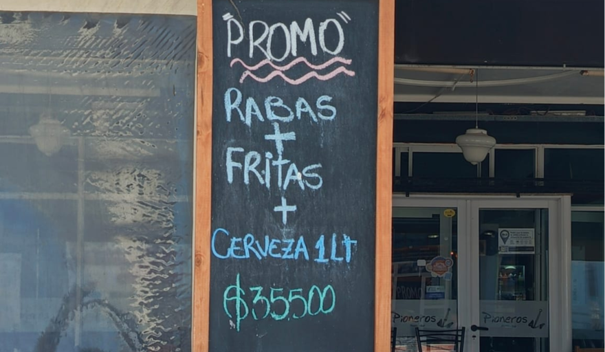 Las promociones gastronómicas abundan en la zona céntrica y apuntan a captar distintos públicos, especialmente en el horario nocturno cuando los locales operan a pleno. Un lomito completo para dos personas con cerveza incluida sale 30 mil pesos, mientras que la combinación de rabas con papas fritas y cerveza trepa a 35 mil en promedio.