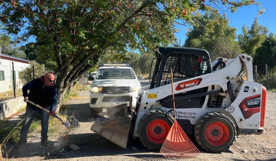 La Delegación Cerro Otto realizó una jornada integral de limpieza y saneamiento en la rotonda del kilómetro 8 de avenida Pioneros, frente a la Escuela Primaria N° 321 y la ESRN N° 123, donde la acumulación indiscriminada de residuos venía generando problemas sanitarios en el entorno de ambas instituciones educativas.