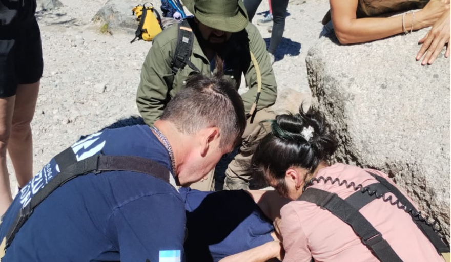En el sector de Lago Moreno, una turista de 57 años sufrió una caída desde una piedra de aproximadamente un metro de altura mientras se encontraba en la playa, golpeándose la cabeza. Al arribo del personal, la mujer se encontraba consciente, con dolor en el hombro y disminución de sensibilidad en las piernas y la cadera. Guardabosques municipales fueron los primeros en asistirla y activaron de inmediato el protocolo de emergencia, dando aviso a Bomberos Voluntarios y al servicio de ambulancia para su atención y traslado.