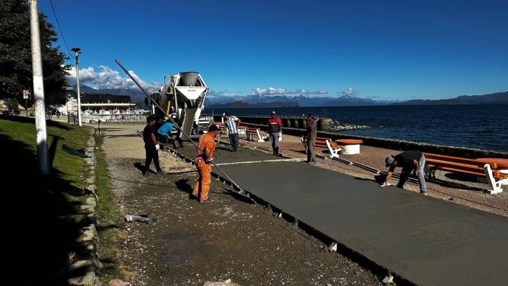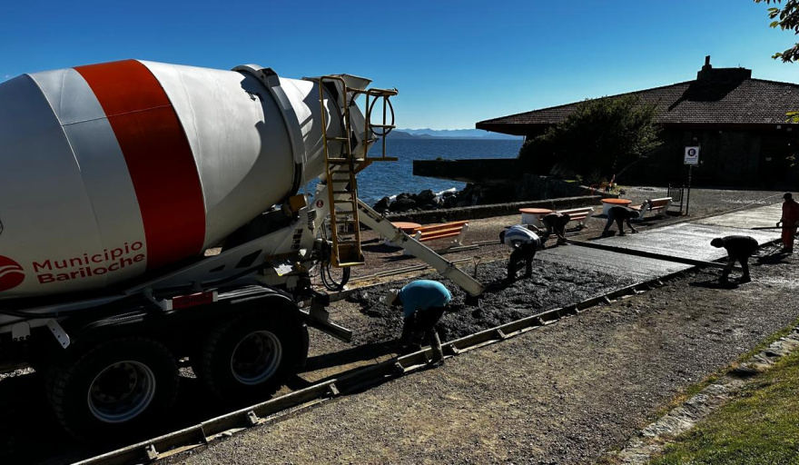 La Municipalidad de Bariloche ejecuta trabajos de infraestructura y parquización en el tramo de costanera que se extiende desde la Prefectura Naval Argentina hasta la Casa del Deporte, con el objetivo de reorganizar la circulación vehicular y ampliar los espacios destinados al uso peatonal.