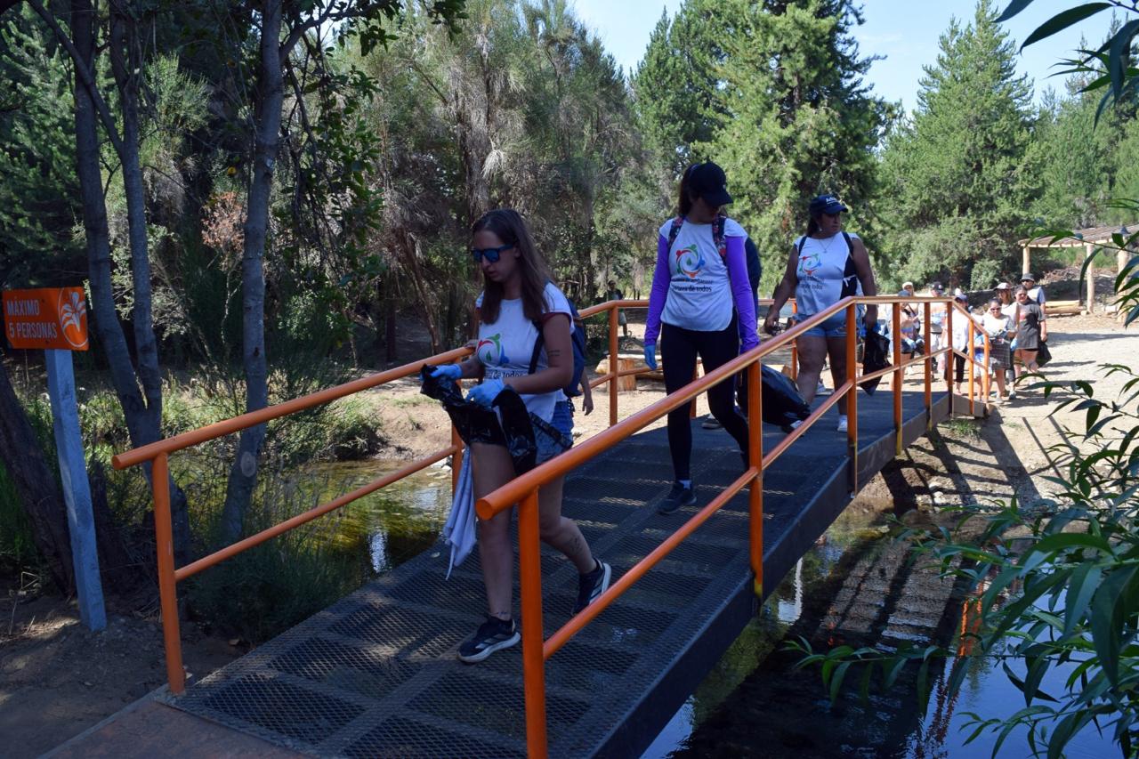 Durante el operativo, unas 16 personas realizaron tareas de saneamiento y recolección de residuos. Los participantes portaban pecheras identificatorias mientras retiraban colillas de cigarrillos, vidrios y material forestal, en una zona que presenta particular sensibilidad por la presencia de pinos y el riesgo de incendios, especialmente en el actual contexto de emergencia ígnea.