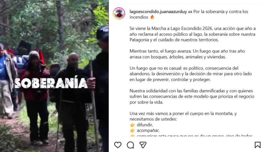 Marcha a Lago Escondido: activistas vuelven al emblemático predio de Joe Lewis en medio de la crisis de incendios en la Patagonia