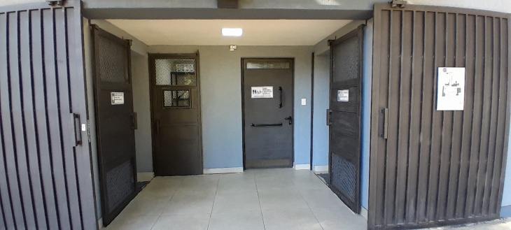 Las fotografías del interior muestran instalaciones modernas con sanitarios diferenciados para damas y caballeros, además de un baño universal accesible que garantiza la inclusión de personas con movilidad reducida. El edificio de 55 metros cuadrados fue diseñado específicamente para soportar el uso intensivo que demanda una zona de alta circulación como el Centro Cívico, priorizando criterios de bajo mantenimiento y uso responsable de recursos naturales, especialmente del agua.