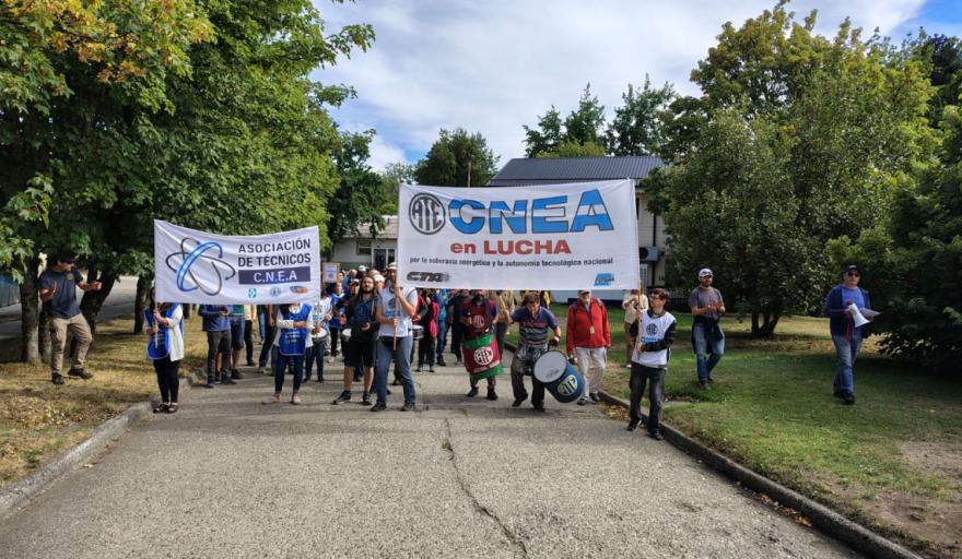Con bombos, banderas y la determinación de quienes saben que lo que defienden es estratégico para el país, trabajadoras y trabajadores del Centro Atómico Bariloche se movilizaron este jueves por las calles internas del predio en una nueva jornada de protesta contra lo que califican como un "vaciamiento sistemático" de la Comisión Nacional de Energía Atómica.