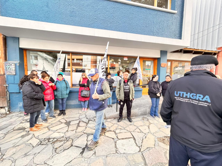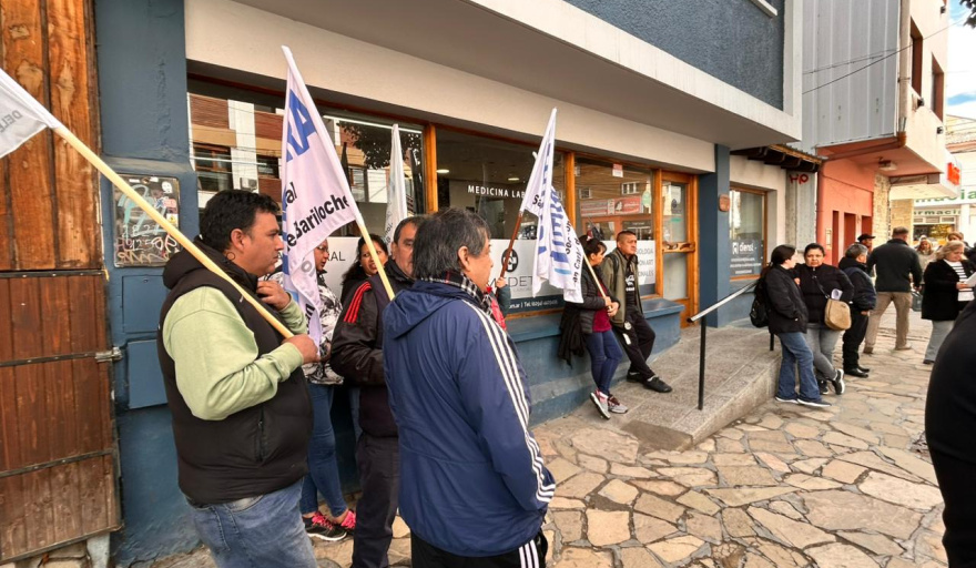 Nelson Rasini, Secretario General de UTHGRA seccional Bariloche, encabezó este miércoles una movilización del cuerpo de delegados frente a las oficinas de MEDET, la empresa de medicina laboral contratada por la mayoría de los empleadores hoteleros y gastronómicos de la ciudad. La acción fue el paso visible de una presentación formal que el gremio ya ingresó por mesa de entrada tanto en la Secretaría de Trabajo de la provincia como en el Ministerio de Salud de Río Negro, reclamando que los organismos con competencia obliguen a la empresa a cumplir la normativa vigente.