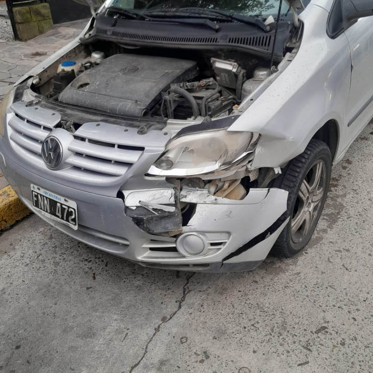 El impacto destruyó el paragolpes delantero, el guardabarros izquierdo y el faro del mismo sector, además de provocar la apertura del capot. Los daños son de consideración y el auto, quedó inutilizable.