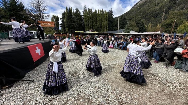 A lo largo de la tarde se sucedieron las actuaciones artísticas. Ballets folclóricos con trajes típicos ocuparon el espacio central del predio, frente a una bandera suiza que recordaba el origen de la colonia fundada a fines del siglo XIX. Las danzas se alternaron con música en vivo ante un público que siguió la programación sentado en mesas o de pie en los bordes del terreno de ripio.