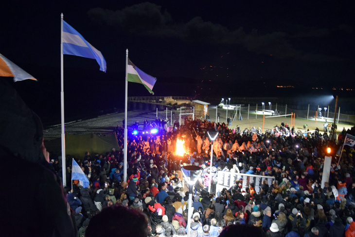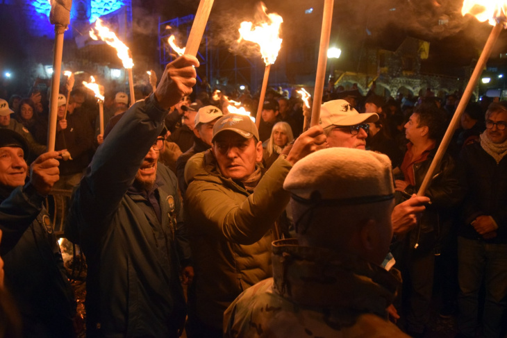 Todo había comenzado mucho antes. Desde las 18, una multitud de vecinos y turistas de todas las edades fue acercándose a la plaza para compartir mates, charlas y el calor de una noche cordillerana que también tuvo bicicleteada familiar y una carrera en homenaje a los excombatientes, actividades que sumaron una masiva participación de atletas y vecinos que quisieron rendir tributo a través del esfuerzo físico.