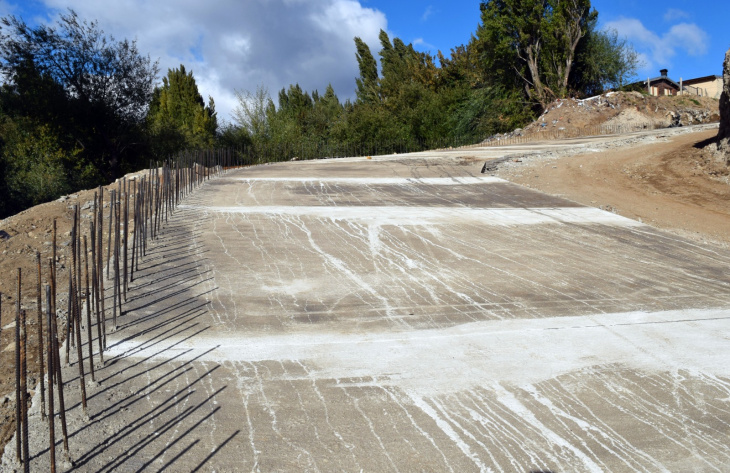 Los trabajos se realizan con hormigón H30 y contemplan la colocación de mallas de acero de 6 milímetros con cuadrícula de 15 por 15 centímetros, conformando una estructura de hormigón armado diseñada para soportar las exigencias de una traza de alta complejidad. En paralelo, se están dejando previstas las armaduras necesarias para la futura instalación de una protección vehicular tipo New Jersey a lo largo de todo el sector lindante al terraplén de mayor altura, una medida que aportará seguridad estructural a la circulación una vez finalizada la intervención.