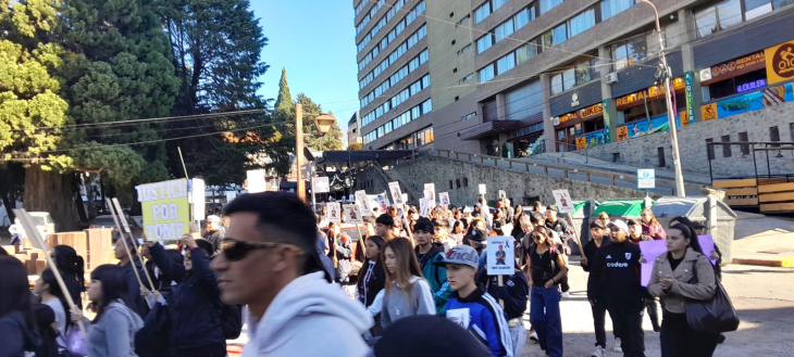 La marcha partió desde el barrio y llegó hasta el Centro Cívico en una tarde de Pascuas con el lago de fondo y bengalas de colores en el aire. Cientos de personas, muchas vestidas de negro, cargaron carteles con la foto de Tommy y una sola palabra: Justicia. Entre ellas estaba Abril Alarcón, su hermana, que tomó el micrófono y dio el testimonio más desgarrador de la jornada.