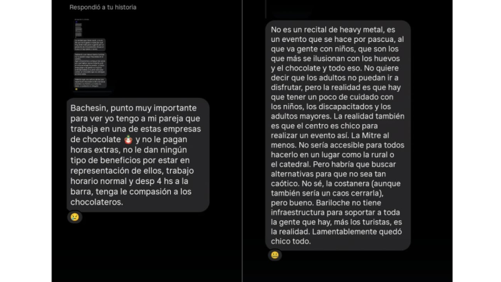 Hubo también quien puso el foco en quienes trabajaron del otro lado del mostrador. Una seguidora contó que su pareja trabaja en una de las empresas chocolateras que participaron del evento, que no le pagaron horas extra, que no recibió ningún beneficio adicional por estar en representación de la empresa y que cumplió su jornada normal para luego quedarse cuatro horas más en la barra. El comentario siguió circulando y generó su propia reacción: "Esto tendría que difundirse más, el cómo se explota a los empleados en un evento internacional", escribió otro usuario.