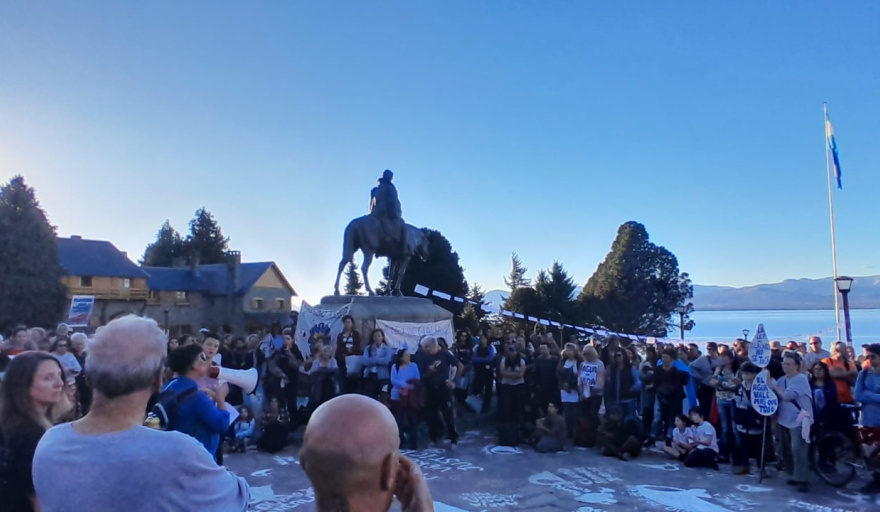 La columna de aproximadamente 500 personas se disolvió en el Centro Cívico al caer la tarde, con el Nahuel Huapi de fondo y la estatua ecuestre como testigo mudo de una ciudad que volvió a salir a las calles para decir que el agua no se negocia.