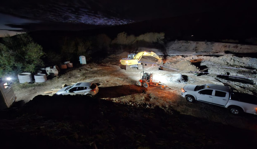 Los trabajos se desarrollan de manera sostenida, con equipos y maquinaria que operan también en horario nocturno. En paralelo, se avanzan en tareas vinculadas al manejo hídrico del arroyo Ñireco.