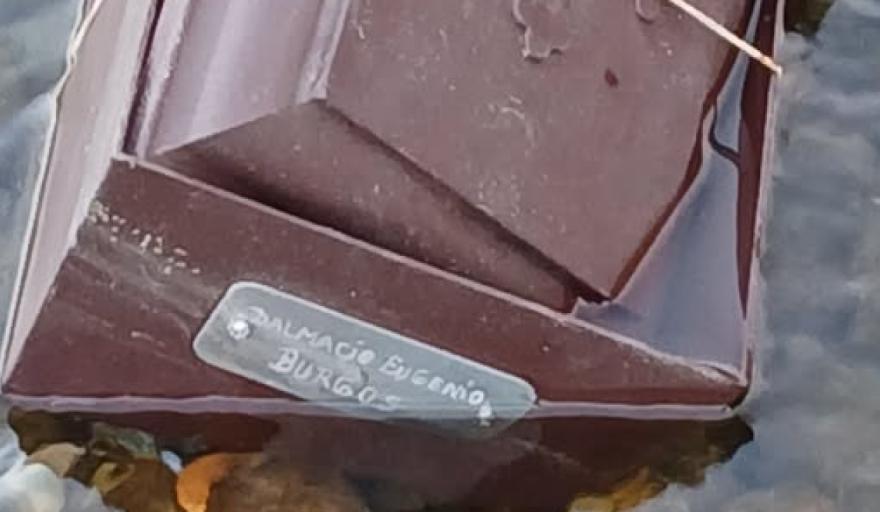 Mónica Bernardino caminaba por el lecho del río Ñirihuau cuando encontró algo que no esperaba: una urna plástica con un nombre impreso, abandonada entre las piedras del cauce. El río está muy bajo en este momento, lo que hace visibles objetos que en otras épocas quedarían sumergidos. No era la primera vez que Bernardino encontraba algo perturbador en ese lugar. Ya había hallado bolsas con animales muertos y otros elementos que asocia con rituales. Pero esto era distinto: la urna tenía nombre y apellido, una fecha de nacimiento, y una historia de vida resumida en pocas líneas impresas sobre el plástico.