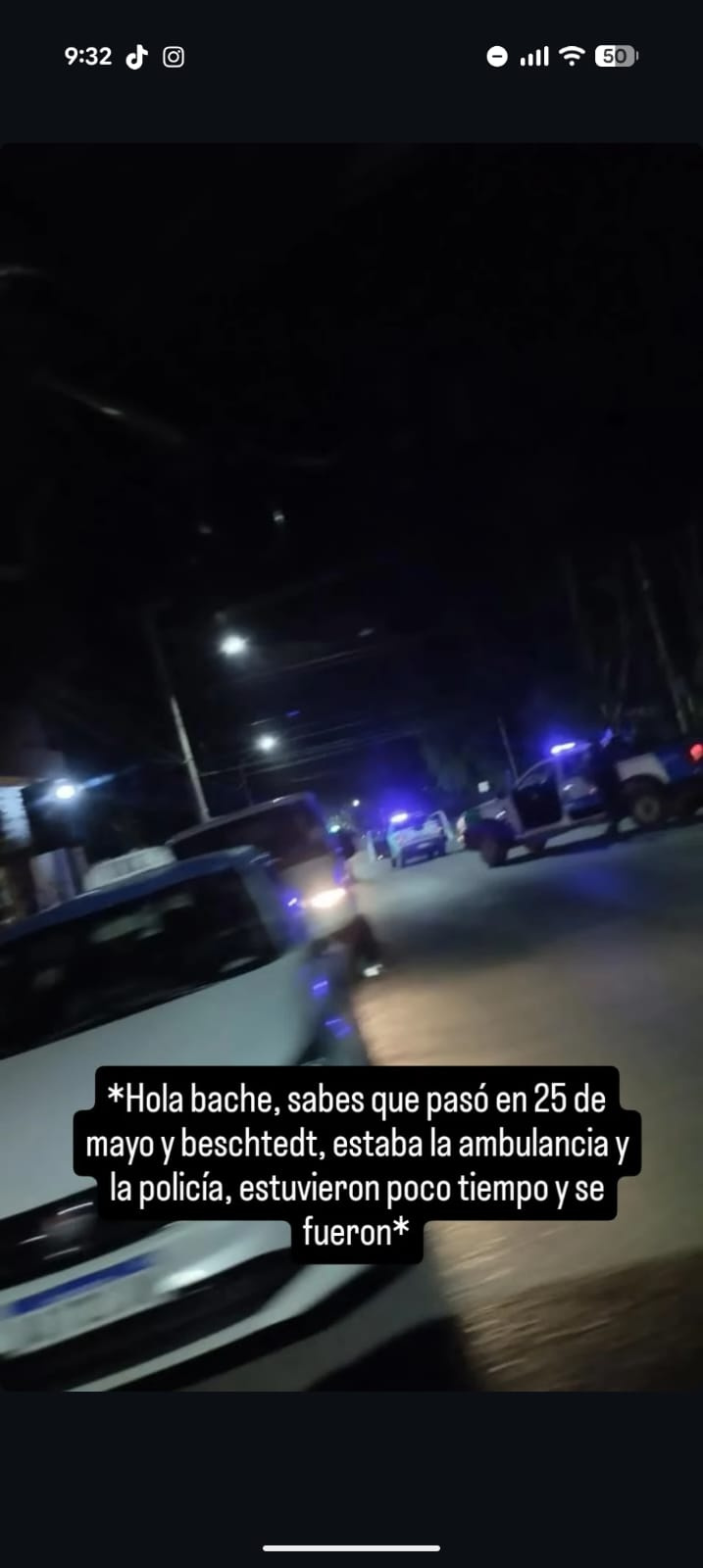 Era la noche del jueves cuando el mensaje llegó a la cuenta de Bache3000: luces de sirena en 25 de Mayo y Beschtedt, ambulancia, patrullero, y una pregunta flotando en el aire oscuro del barrio: ¿qué pasó? "Estuvieron poco tiempo y se fueron", decía quien escribió desde la vereda, sin saber todavía que acababa de ser testigo de algo extraordinario.