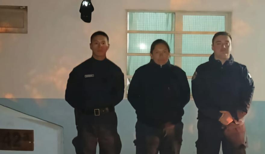 En la foto de esa madrugada aparecen tres policías parados frente a la unidad. Ella está en el medio. No posa como una heroína. Está ahí, de pie, con el uniforme oscuro y el frío patagónico encima, como cualquier otra noche de guardia. Pero esta no fue una noche cualquiera.