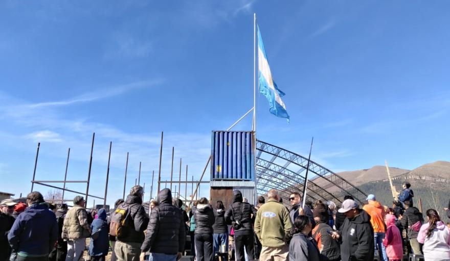 Lo que se izó este miércoles en la Pampa de Buenuleo fue, en sus palabras, "el comienzo de un nuevo camino con muchísimo por delante". La bandera quedó ondeando sobre el primer edificio. El resto está por construirse.