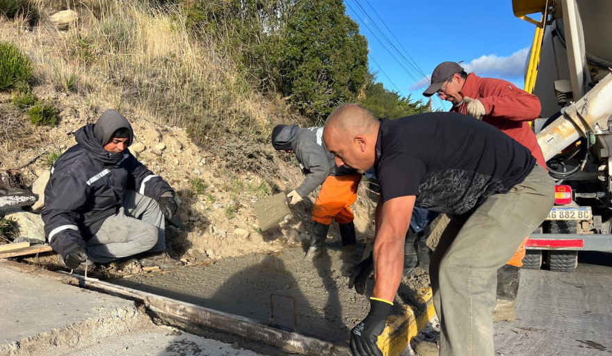 Para esta etapa se utilizaron dos camiones mixer con un total de 14 metros cúbicos de material. El trabajo estuvo encabezado por el titular de la Delegación El Cóndor, Jaime Breca, mientras que agentes de la Subsecretaría de Tránsito y Transporte acompañaron la jornada para garantizar el orden vehicular y condiciones seguras durante la ejecución de las tareas.