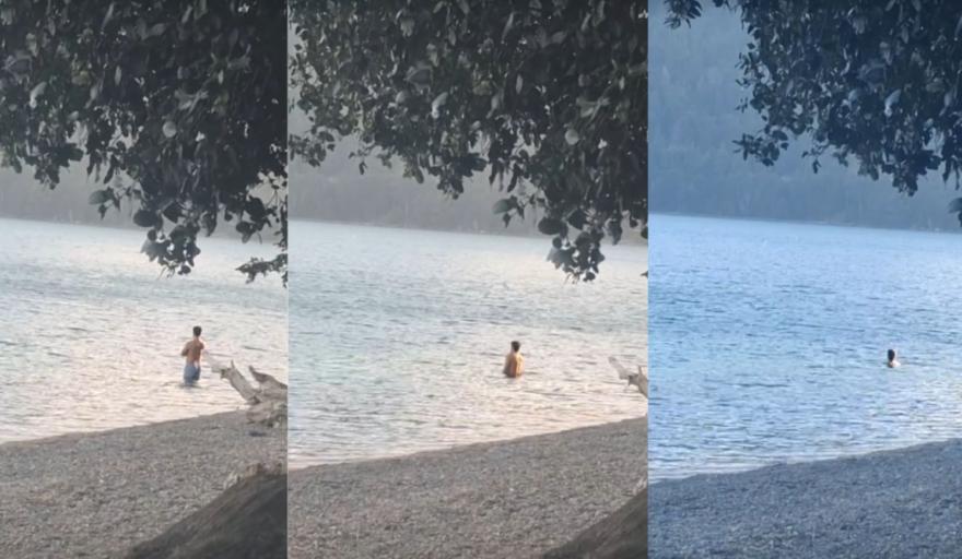 Un seguidor de Bache3000 capturó la escena esta semana en el lago. El frío era real —el termómetro marcaba lo que marcaba, y las cumbres ya lucían la primera nieve de la temporada. No era una tarde para nadar. Era una tarde para estar adentro con algo caliente.