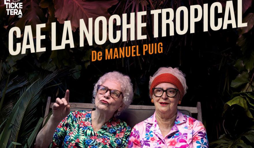 El teatro nacional de primera línea llega a la Patagonia. "Cae la noche tropical", la obra basada en la novela homónima de Manuel Puig, se presentará en San Carlos de Bariloche el viernes 23 de mayo a las 20 horas en el Gimnasio María Auxiliadora (Beschtedt 374), en el marco del ciclo Grandes Relatos impulsado por Nevadas Escénicas.